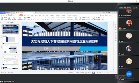 在王瑶老师汇报会,王东升老师、贺亚楠老师、王晓亮老师等其他参会老师进行了热烈讨论,就论文选题的现实意义、理论分析、变量衡量方式、政策建议等提出了各自的看法与建议。(单机麻将在线