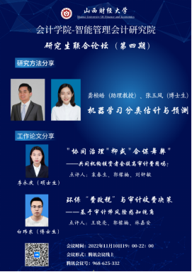 与智能管理会计研究院联合举办的研究生论坛(暨博硕士生学术沙龙活动)第四期以线上会议的形式举行。参会人数达210余人。