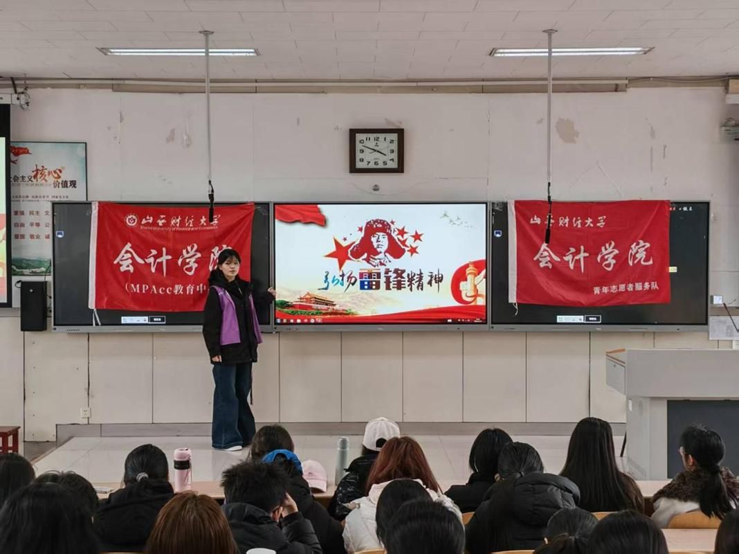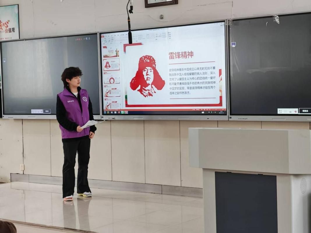 宣讲会系统阐释了雷锋精神的核心内涵与政治品格,明确其核心在于崇高追求、无私奉献、爱岗敬业、创新进取、艰苦奋斗,深入解读了爱憎分明的阶级立场、言行一致的革命精神、公而忘私的共产主义风格、奋不顾身的无产阶级斗志四大政治品格,帮助同学们打破对雷锋精神的片面认知,深刻把握其在新时代的实践价值。同时,结合大学生成长特点与志愿服务要求,宣讲明确了践行雷锋精神的路径:以“四史”学习筑牢理想信念根基,树立正确的价值导向;紧扣数字化公益、乡村振兴等国家战略,创新志愿服务载体;积极投身社区服务、扶贫济困等实践,构建关爱互助的良好氛围;推动学雷锋活动常态化、长效化,将志愿服务融入日常学习生活与校园文化建设;立足学业与未来岗位,以担当作为践行雷锋精神。