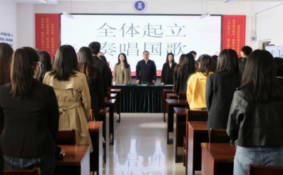 会议在庄严的国歌声中拉开序幕。