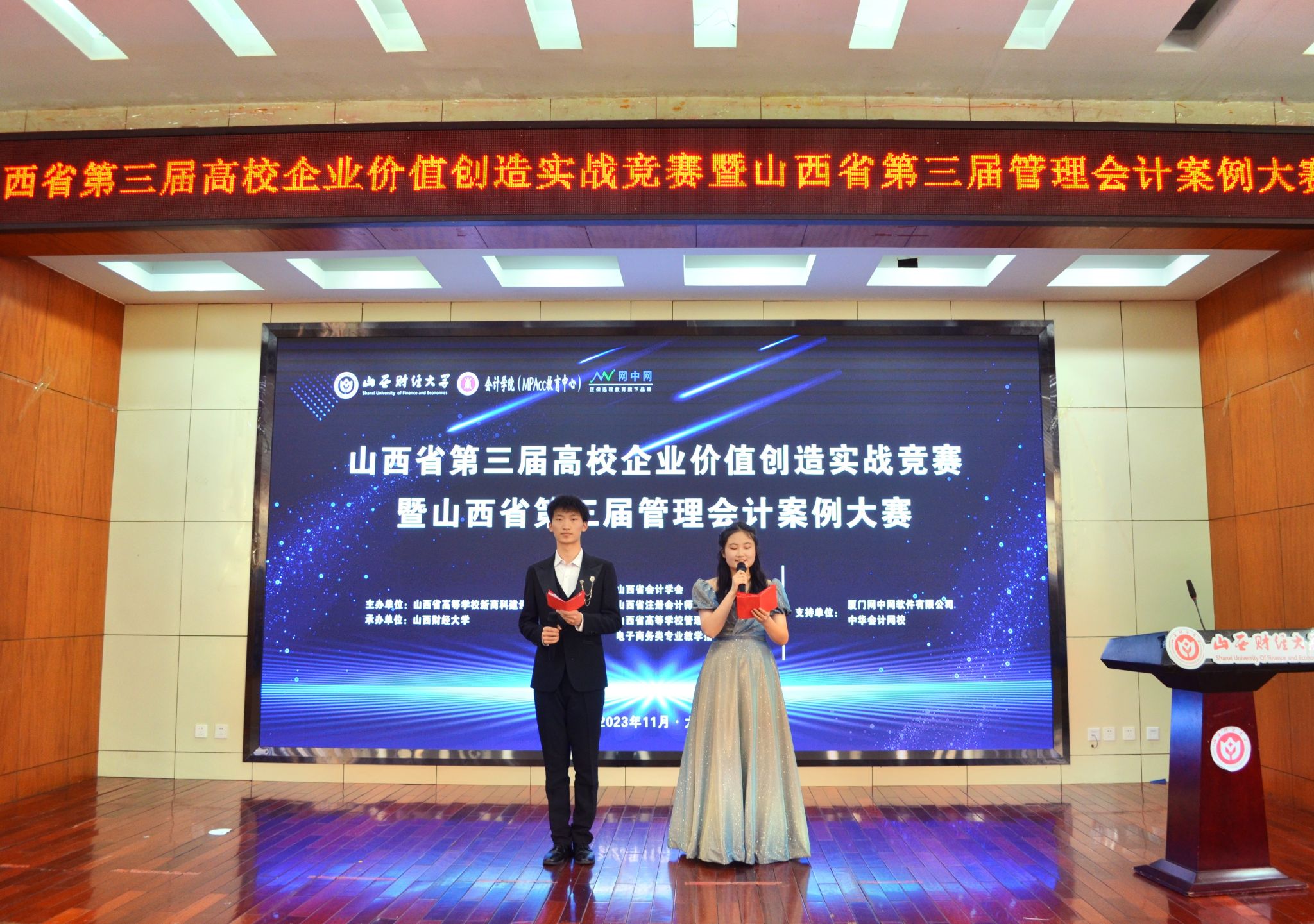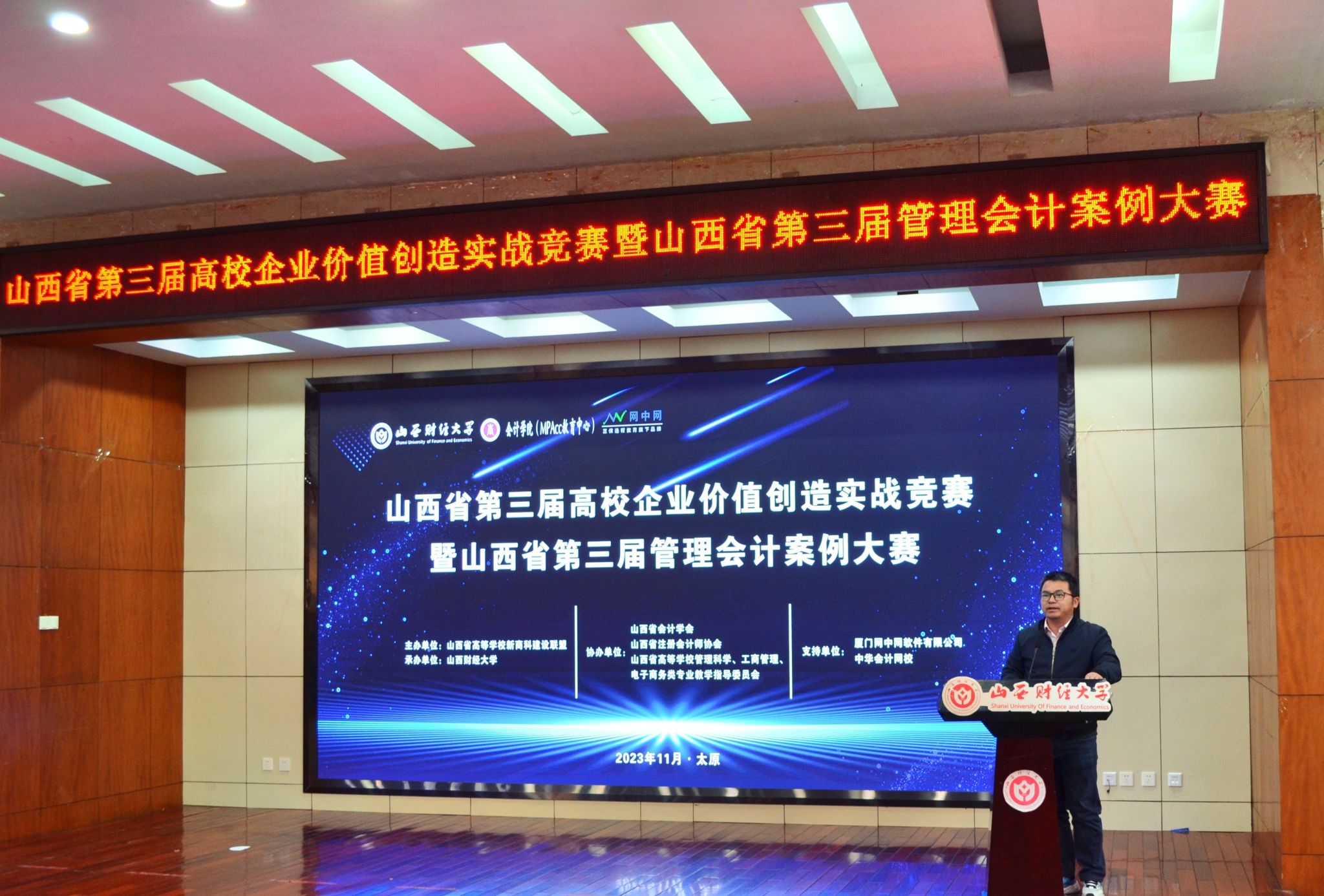 11月25日,由山西省高等学校新商科建设联盟主办,山西财经大学承办,山西省会计学会、山西省注册会计师协会,山西省高等学校管理科学、工商管理、电子商务类专业教学指导委员会协办的山西省第三届高校企业价值创造实战竞赛暨山西省第三届管理会计案例大赛决赛在我校开幕。