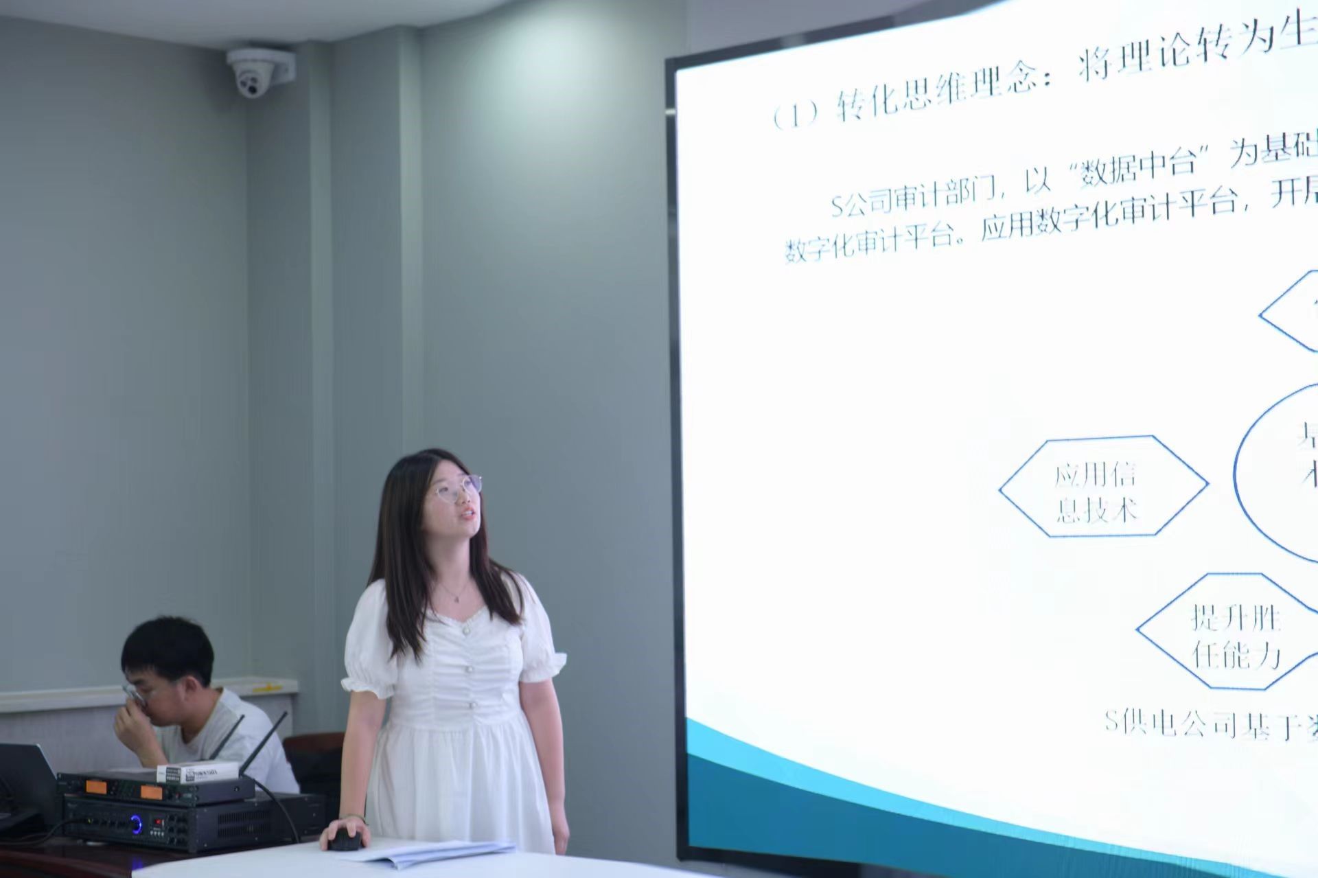 在财务调研报告竞赛决赛中,来自专业硕士的队伍着眼实践视角,使用多种案例分析方法,对相关问题进行了深度剖析,内容涉及产教融合、企业审计、ESG信息披露、绿色转型等方面。决赛包括案例分析和答辩两个环节。面对评委的问题,选手们展示出了扎实的专业知识和高度的财务素养。最终,高中泰团队的《产教融合视域下审计专硕寒假社会实践现状分析——基于中部某财经院校的调查问卷》在激烈的竞争中力压其他团队,摘得桂冠。