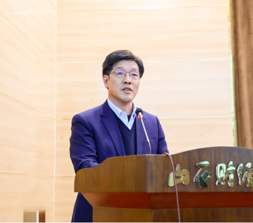 蔡江泽副厅长对母校人才培养质量和近些年取得的改革发展成就给予高度赞扬和充分肯定。他指出“山西省资产评估行业青年人才培养基地”的建立,是我省注册评估师行业发展的一件大事,是山西省财政厅与山西财经大学开启深度合作的崭新起点。基地的成立对于实现高校与行业组织的优势互补和资源共享,解决我省资产评估专业大学生实习就业需求与资产评估机构人才紧缺之间的矛盾,实现人才培养和行业发展的双赢目标,十分有意义。他勉励同学们珍惜机会、珍惜时光,努力学习、学以致用,积极投身资产评估事业,以良好的职业操守、扎实的专业能力,扛起新时代赋予资产评估行业的使命和责任,以专业报国的初心情怀,在我省全方位推动高质量发展的宏伟征程中贡献智慧和力量。